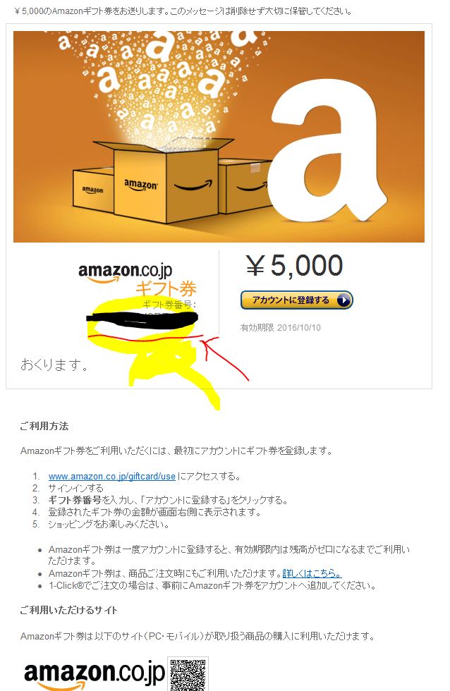 ↑ですね。来年の10月10日まで使えるギフト券ですね。