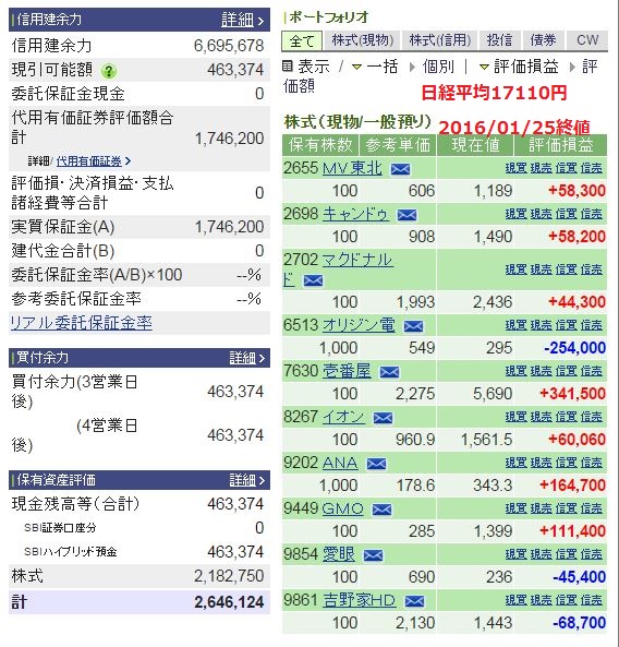 そして、2016年1月25日現在の日経平均は17110円に下がっています。